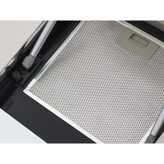 Металевий жироуловлюючий фільтр очищає випаровування і запахи, поглинаючи жирні компоненти та інші дрібні частинки в газах. При необхідності труба, що відводить повітря, може бути приєднана до повітропроводу або виведена назовні.