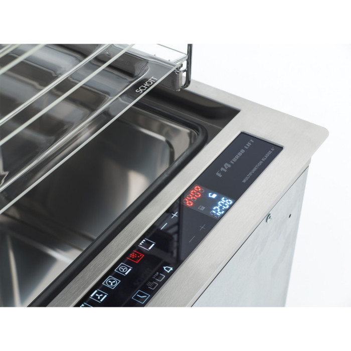 ▪ Модельний ряд ▪ Верхній поверхня, умонтований в стільниця — чорна склокераміка ▪ Рамка поверхня духовий шафа із нержавіючий сталь INOX Оснащення ▪ Система тангенціальний охолодження ▪ Хромований драбинка задля установка деко▪ Система висувний ДЕК Teleskop 3 рівень▪ 3 рівень задля установка деко ▪ Галогенний освітлення камера▪ Автоматична включення освітлення при висовування духовий шафа▪ Економія електроенергія дякувати автоматичний відключення освітлення Комплектація ▪ 3 універсальний скляний дека Kristall Управління▪ Електронний Управління Logic control▪ Повністю сенсорне Управління Full Touch Електронний система підйом і опускання духовка Touch-Lift▪ Багатофункціональні LED дисплей▪ Блокування — Захист дітей▪ Сенсорна блокування система опускання Safety-LIFT Комфорт ▪ Духовий шафа з ел. гриль Multi 14▪ 12 функція нагрів в т. ч. піца,