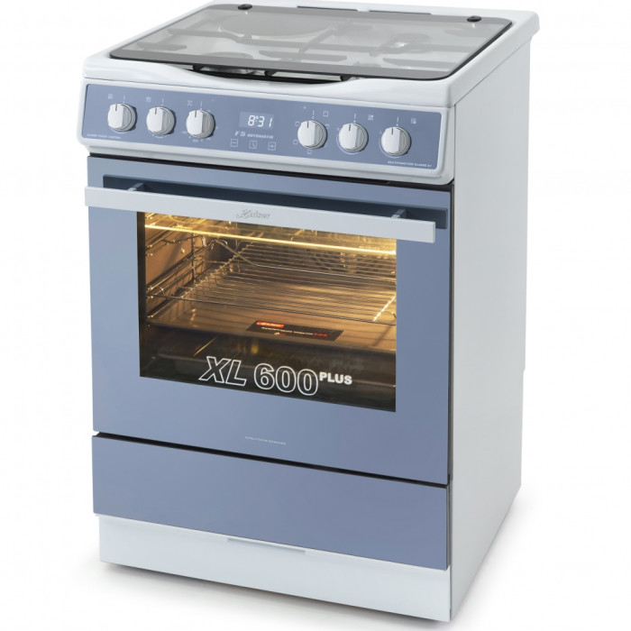 * Клас енергоспоживання Super A+ * Електронний програмуючий пристрій Touch Control * Великий яскравий дисплей * Панель управління з ергономічним нахилом Газо-електрична нагрівальна поверхня: * Нові газові пальники-зменшення витрати газу, €CO-Systemпідвищення ефективності нагріву, турбота про навколишнє середовище * Система запобігання від витоку газу в пальниках Газ-Контроль * Електрозапалювання конфорок в поворотних ручках управління * Мала, нормальна, посилена Газові пальники * Електрична конфорка * Скляна кришка Мультифункціональний електрична духова шафа: * Збільшений обсяг * Демонтована дверцята зі знімними стеклами – 3 шт.) - холодний фронт * Таблиця рецептів на внутрішній стороні дверцят * Елегантна ручка дверцят з логотипом * Самоочисна каталітична емаль духової шафи * Хромовані бічні сходинки для листів * Електричний обертовий вертел, рамка з вилкою зі знімною ручкою • 2 емальованих дека різної глибини * Хромована багатофункціональна решітка * Легковыдвигающийся посудний ящик на роликах зі скляним фронтом * Система висування листів (опціонально) Teleskop Виконання • *W - біла емаль, B - коричнева емаль * Чорне Дзеркальне скло