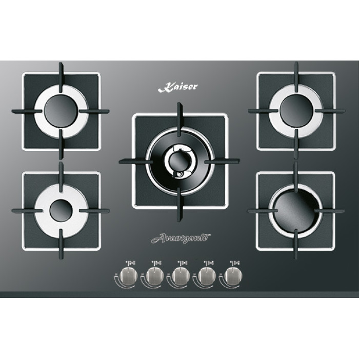 - Газ на склі-скошений край-фаска Оснащення - Чавунні решітки-чавунні кришки конфорок-чавунна підставка для Вок-чавунна підставка для кавника опціонально-Форсунки для балонного газу-можливість перемикання з магістрального газу на балонний Управління - Елегантні ергономічні ручки управління з нерж. сталь Комфорт- Легкість очищення-Автопідпал пальників в ручках-Газ-контроль-безступінчате управлінняГазові Поверхні Kaiser забезпечені системою запобігання від витоку газу пальників конфорок. Протяг або википіла блюдо може привести до загасання будь-якої пальника.В цьому випадку система газ-контролю автоматично перерве надходження газу до конфорки поверхні.