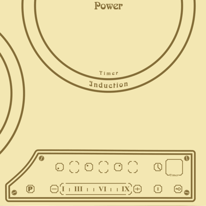 - Індукційні нагрівальні поля, саморегулюючі під розмір посуду