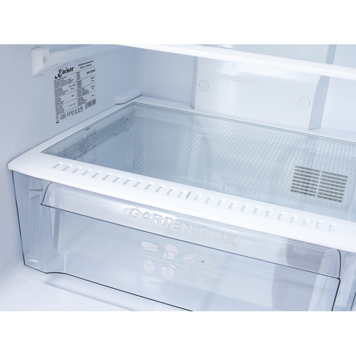 2 скляні полиці, 1 складена Полиця, 2 бокси Super fresh з календарями термінів зберігання, 4 дверні полиці, підставка для яєць, полиця для пляшок