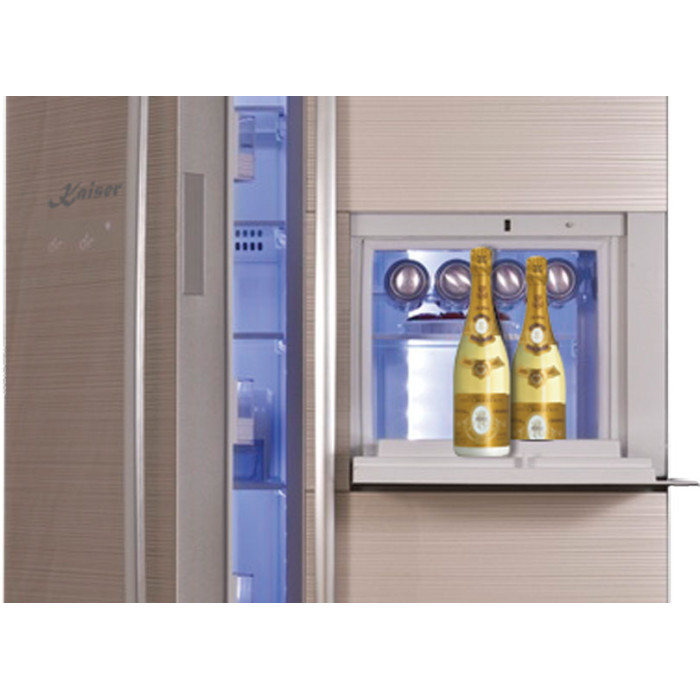 Холодильник Kaiser KS 90210 G Виконання▪ Со INOX look скляний фронт ▪ окремостояча модель Side-by-Side▪ Ручки відділень-нержавіюча сталь ОснащенняХолодильна камера:▪ Зона Super fresh - 2 висувних прозорих боксу PLUS▪ Vitamin-верхній» сухий " бокс з системою підсвічування DayLight для збільшення терміну зберігання овочів і фруктів▪ GARDEN BOX - бокс для овочів і фруктів зі збереженням вологи. Ізольований бокс c обдувом і регулюванням вологості для збереження вологи і поживних речовин в продуктах Морозильна камера : ▪ Потужність заморожування: 16 кг за 24 год▪ 2 висувних морозильних боксу Freeze box Комплектація Холодильна камера:▪ 4 скляні полички Safety Glass із захисною окантовкою▪ з яких 2 переставляються по висоті▪ 2 боксу Super fresh з календарями термінів зберігання продуктів двері холодильної камери:▪ бар для напоїв з незалежно відкриваються дверцятами-зручність і запобігання підвищення температури в основній камері▪ 3 полиці Logic space, придатні до миття в посудомийній машині:▪ 1 полиця з кришкою для масла, сиру і т. п.▪ підставка для яєць морозильна камера: ▪ 5 скляних поличок Safety Glass з захисною окантовкою▪ 2 бокси Freeze box з календарями термінів зберігання продуктів▪ 1 Пристрій для виробництва кубиків льоду Ice Maker Двері морозильної камери:▪ 5 полиць Logic space, придатних до миття в посудомийній машині Управління▪ Електронне управління Logic control▪ Багатофункціональний LСD дисплей▪ інтелектуальні призначені для користувача режими▪ Роздільна електронне регулювання і контроль температури з точністю до 1 °С▪ Точна цифрова індикація температури в холодильній і морозильній камерах▪ Блокування-захист від дітей Комфорт