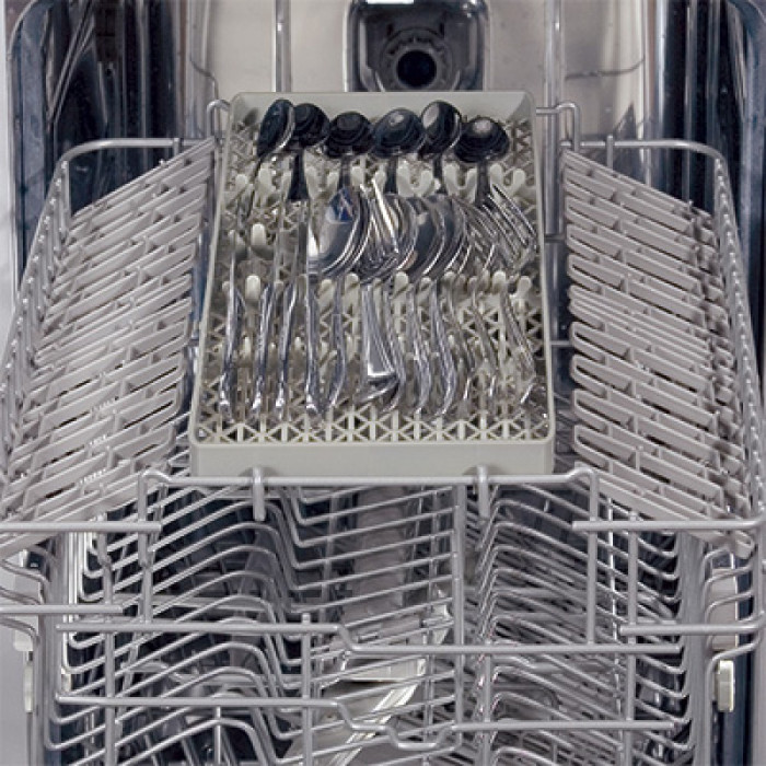 - Виймається кошик Komfort зі спеціальною кришкою для столових приладів